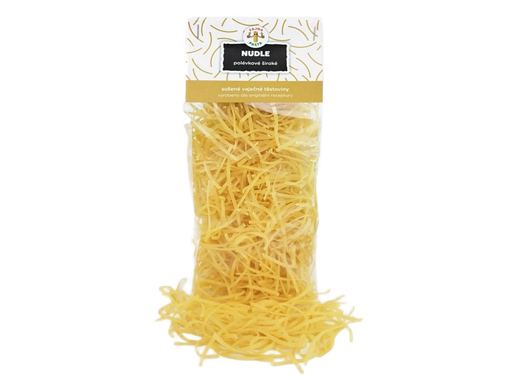 Široké polévkové nudle vyniknou v každé polévce. Tradičně se hodí samozřejmě do masových i zeleninových vývarů a z obyčejného sobotního oběda vykouzlí dokonalý sváteční pokrm. Skvěle ale doplní i sytější krémové a zeleninové polévky, třeba oblíbenou minestrone. Díky jejich šířce se nemusíte bát použít je i do hustějších zavářek, kde zůstanou pevné a krásně udrží tvar. Zkrátka ideální řemeslné těstoviny pro ty, kdo chtějí klasiku s trochou šmrncu.