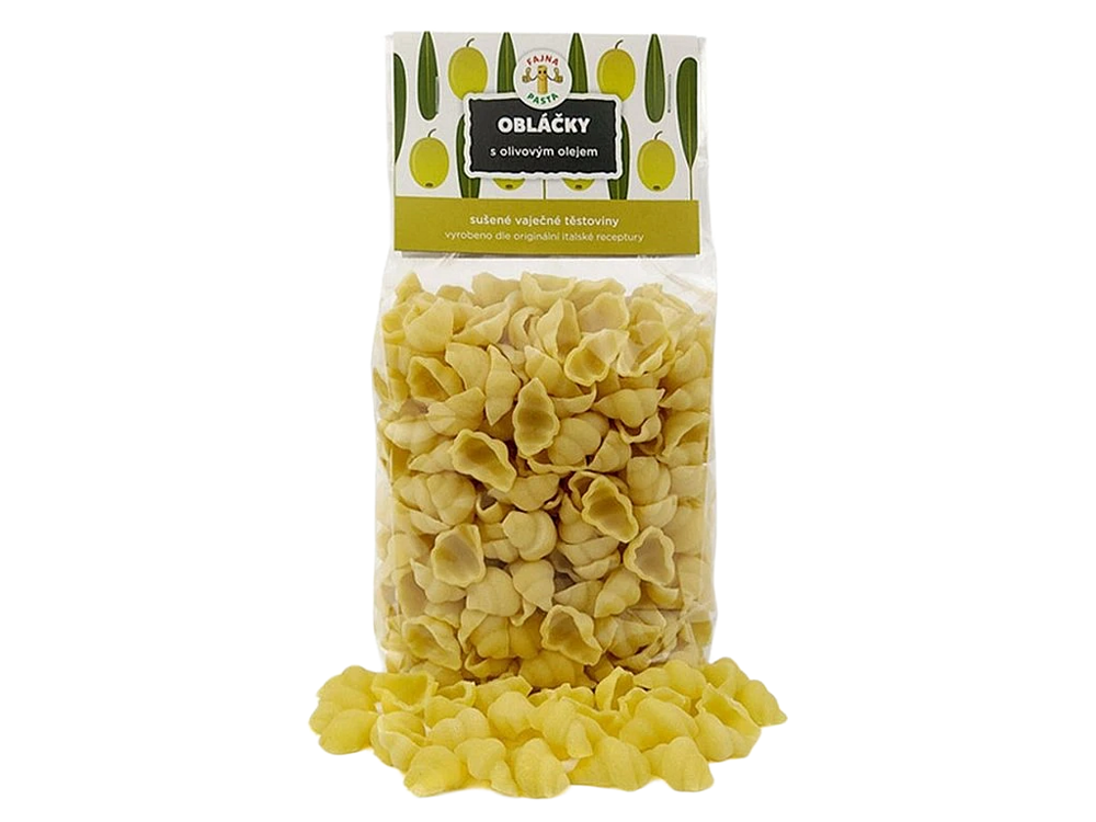 Olivové těstoviny nadchnou všechny milovníky středomořské kuchyně. Díky svému tvaru otevřené mušličky obláčky zachytí a uchovají chuť vaší oblíbené omáčky. Tato varianta našich řemeslných těstovin s olivovým olejem dodá vašim pokrmům navíc jemný nádech hořkosti a příjemné štiplavosti, která je pro kvalitní olivový olej typická.