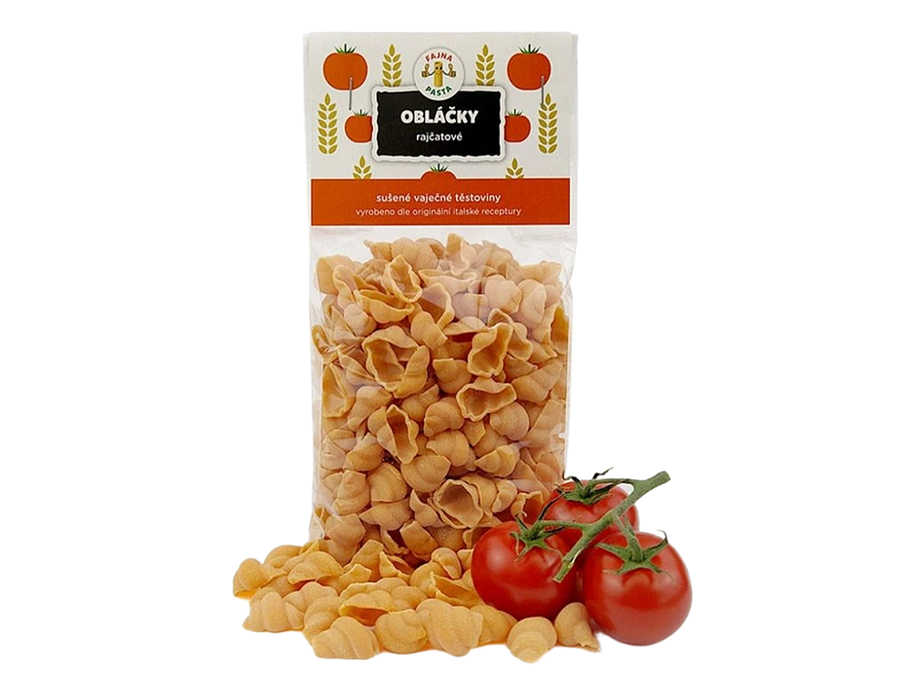 Rajčatové obláčky jsou originální variantou našich oblíbených řemeslných těstovin. Jejich přirozenou jemně červenou barvu i lehkou zeleninovou chuť jim dodávají sušená rajčata. Na váš talíř tak přinesou slunnou Itálii a každému soustu dodají svěží letní chuť.