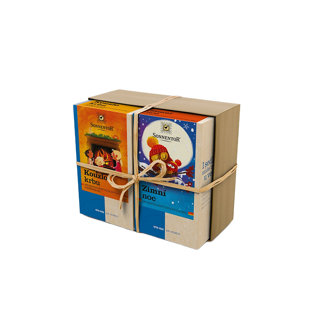 Kouzlo krbu bio (aromatizovaný ovocný čaj): šípek bio, jablka bio, ibišek bio, pomerančová kůra bio, skořice bio 9 %, éterický olej bio (pomeranč bio, vanilka bio)